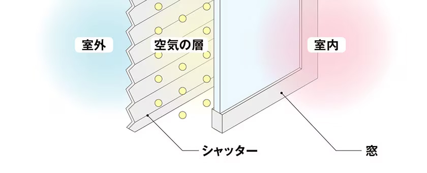 シャッターを設置することで、窓との間の空気層が断熱効果を生み出し、