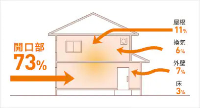 熱の流入割合[夏の冷房時] 出典:(一社)日本建材・住宅設備産業協会