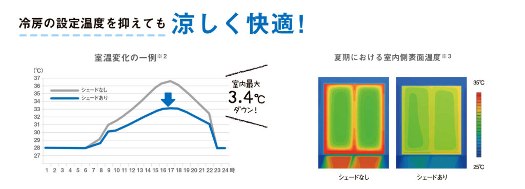 室内で日差しを遮ろうとすると、カーテンやブラインド自体が温まってかえって室温が上昇してしまう原因になります。そこでおすすめしたいのがLIXILの「スタイルシェード」です。